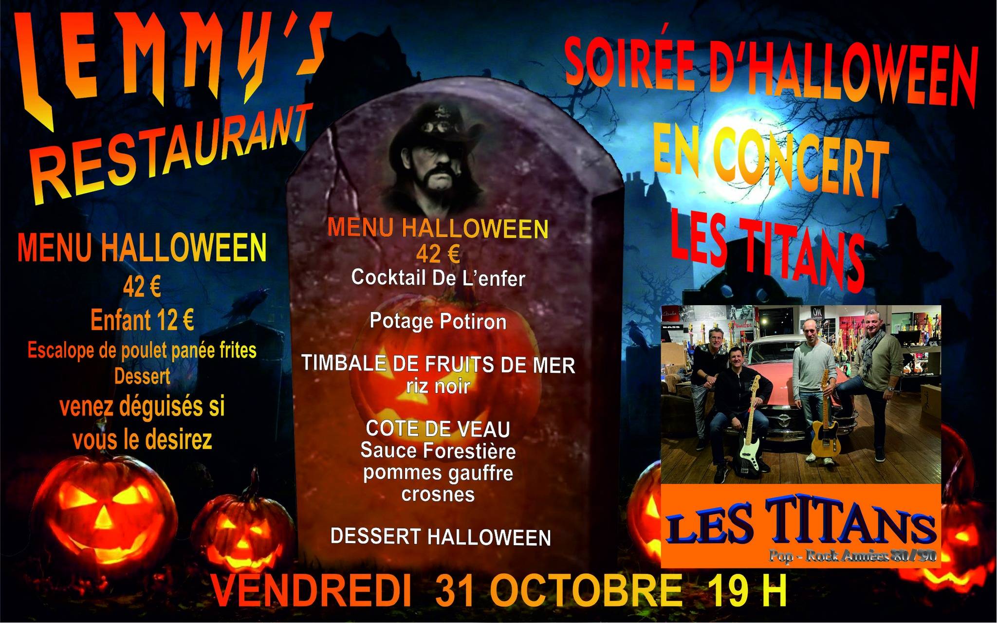 Préparez vos plus effrayants déguisements ! Le Lemmy’s Restaurant vous donne rendez-vous le vendredi 31 octobre à 19 h pour une soirée d’Halloween inoubliable. Au programme : un menu spécial Halloween à 42 € (12 € pour les enfants) concocté autour de saveurs d’automne et de mer, accompagné d’un concert rock du groupe Les Titans, revisitant les grands classiques des années 80/90. Ambiance garantie, costumes bienvenus, frissons assurés !